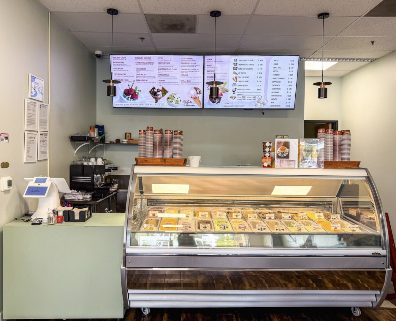 The best Italian Ice cream and coffee shop in the area. We have tables for small parties which is perfect for social times nearby.