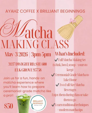 - Take-Home Bonus: Every attendee will receive a complete Matcha kit to take home( whisk, bowl, scoop) to continue the experience at home!