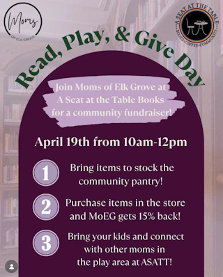 Join Moms of Elk Grove and A Seat at the Table for a morning of community, connection, and giving back!