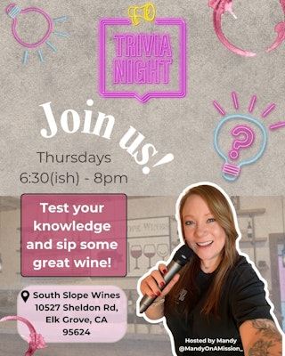 Every Thursday from 6:30–8 PM, we’re bringing the laughs, the wine, and the competition with Trivia! 🍷